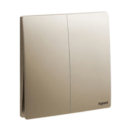 Legrand Mallia Senses 2-Gang 2-Way 16AX Switch, Two-Point, Dual-Circuit Control, Suitable for Home & Office – Champagne
