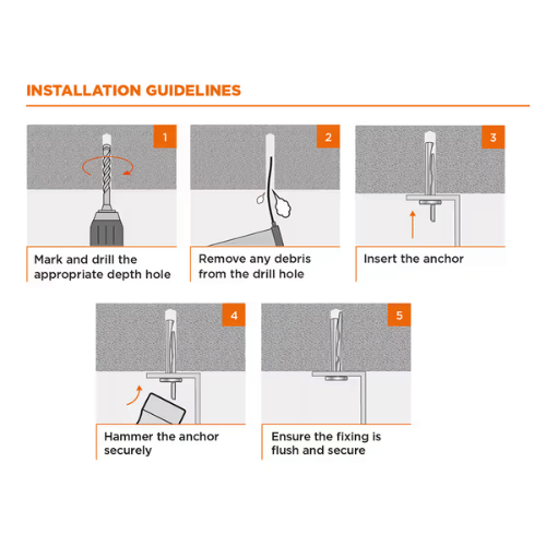High-Strength Wedge Anchor:Â Provides secure fastening in concrete and masonry surfaces.